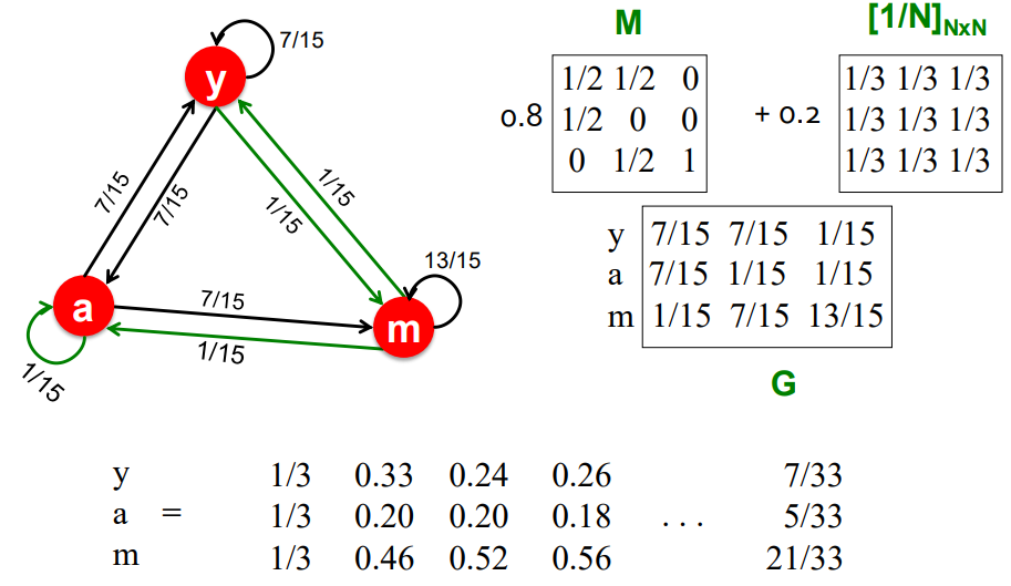 어떤 경로를 통해 b 노드에 도달한 이후엔, surfer가 b에 영원히 갇히기 때문에 이와 같은 문제가 발생