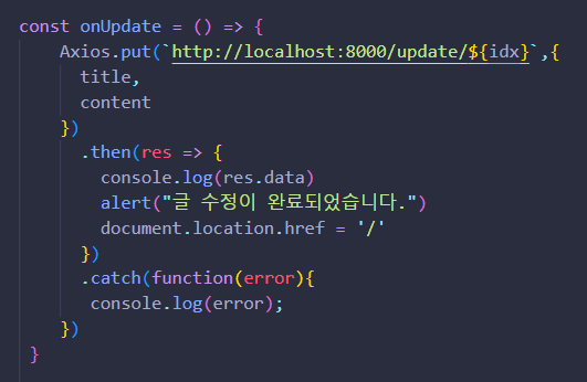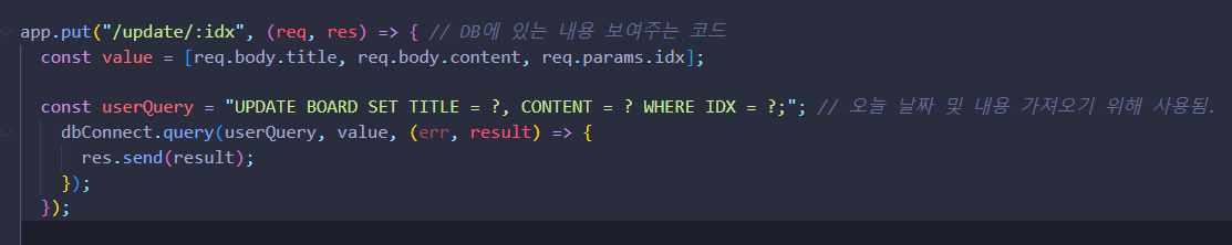 마지막으로 index.js부분에 update부분 넣어주면 CRUD게시판 끝.