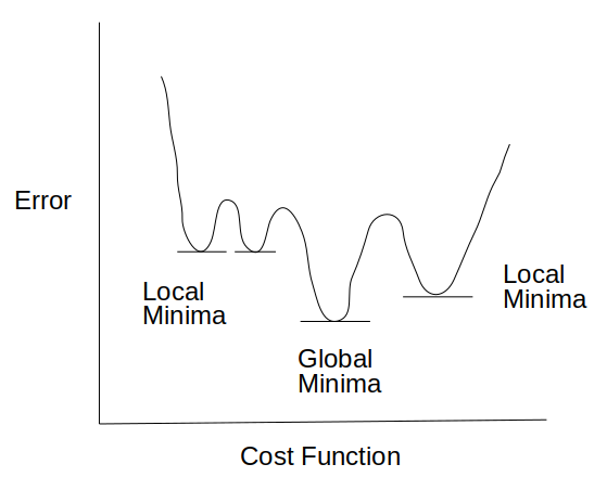 위의 그림과 같이 cost function이 convex하지 않게 된다. 그래서 Local minimal에 빠질 가능성이 높다.