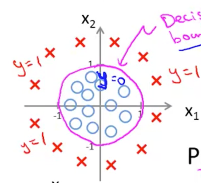 여기에 추가로 linear하지 않은 Polynomial logistic regression에 대해서 decsion boundary가 존재한다.