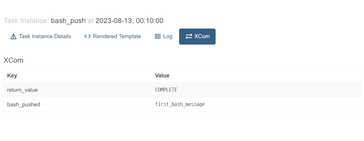 "{{ ti.xcom_push(key='bash_pushed', value='first_bash_message')}} && "