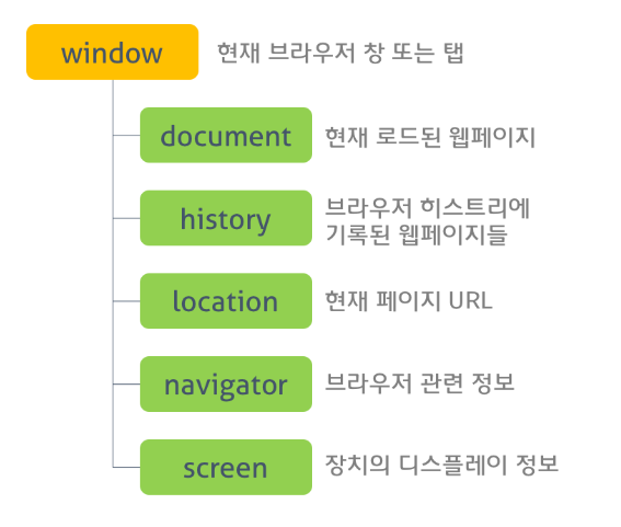 최상위 객체는 window 객체로 현재 브라우저 창 또는 탭을 표현하는 객체이다