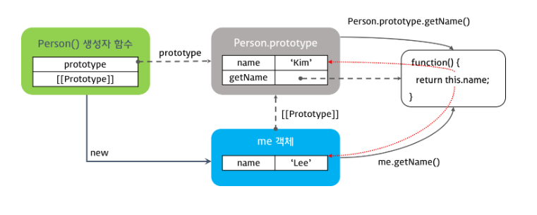 프로토타입 객체 메소드 내부에서 사용된 this도 일반 메소드 방식과 마찬가지로 해당 메소드를 호출한 객체에 바인딩된다