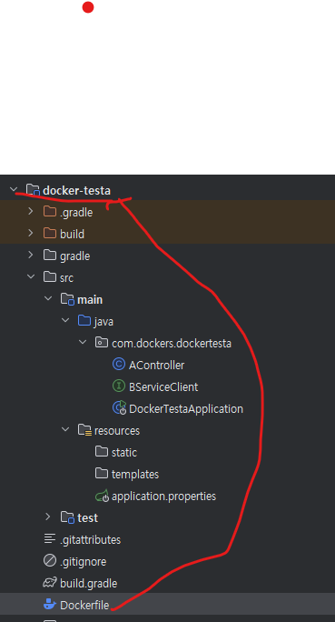 예제 사진으로 docker-testa/Dockerfile 경로로 만들면 된다.