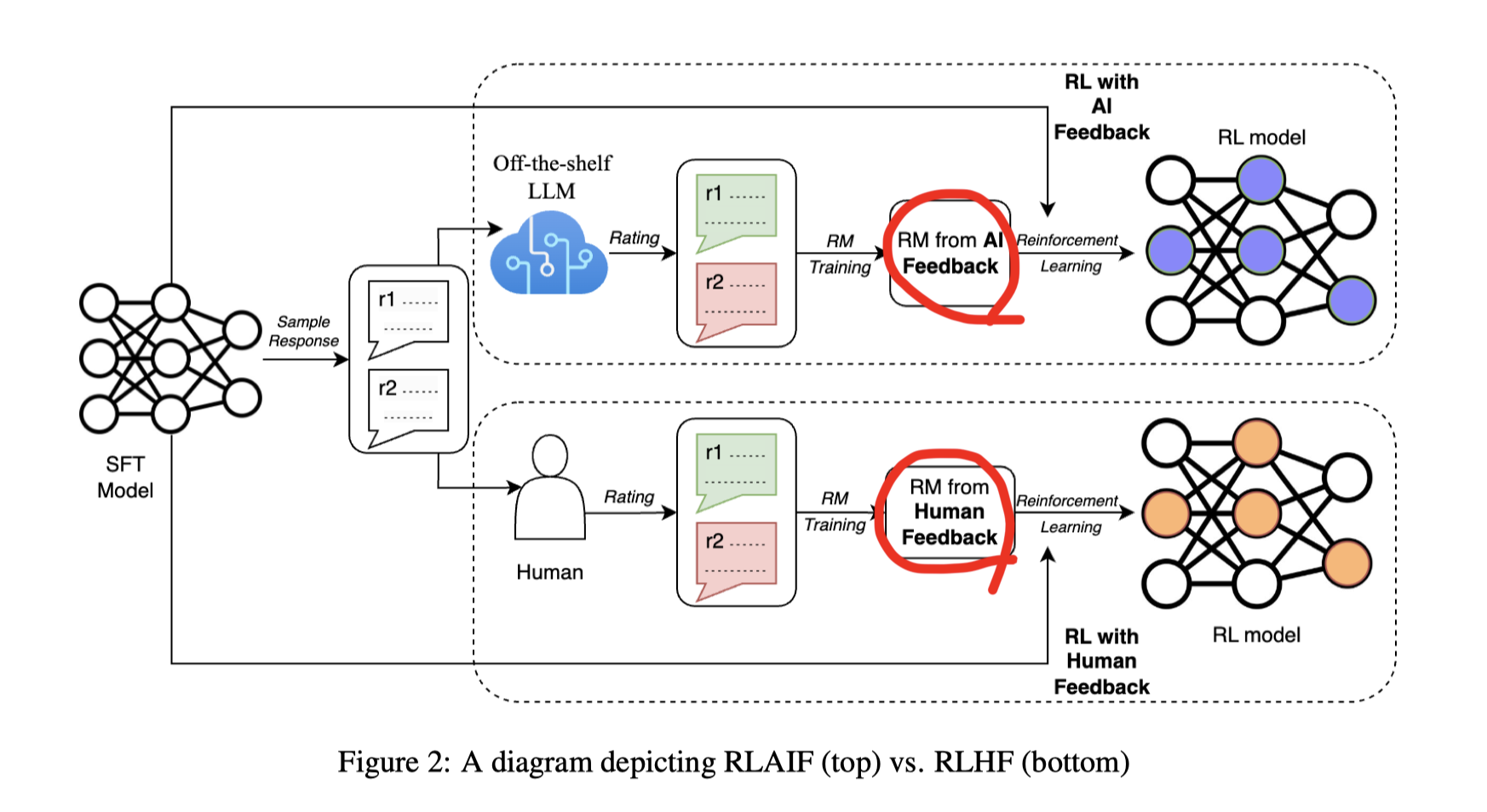 - 2023년 Gilardi의 연구에서, AI로부터 얻는 preference를 리워드 모델 학습에 사용한 사례 등장