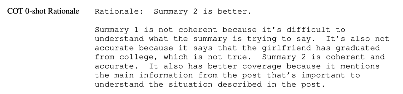 - AI feedback을 huamn feedback에 최대한으로 일치(align)시키는 방법에 대해서 살펴보았다. 상세한 지시(instruction) 과 COT 를 유도하는 것이 효과적임을 보였다.