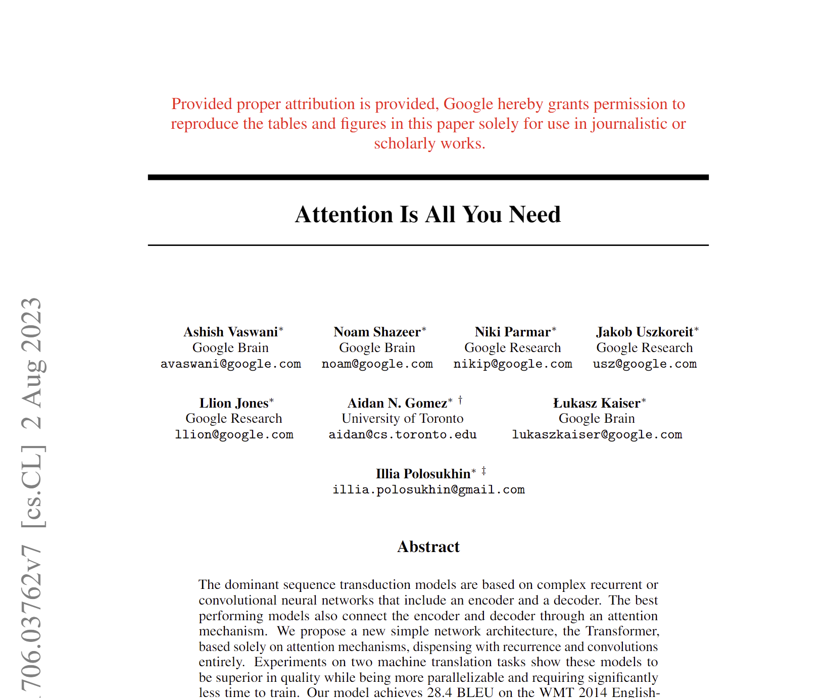 arXiv:1706.03762v7 [cs.CL] 2 Aug 2023