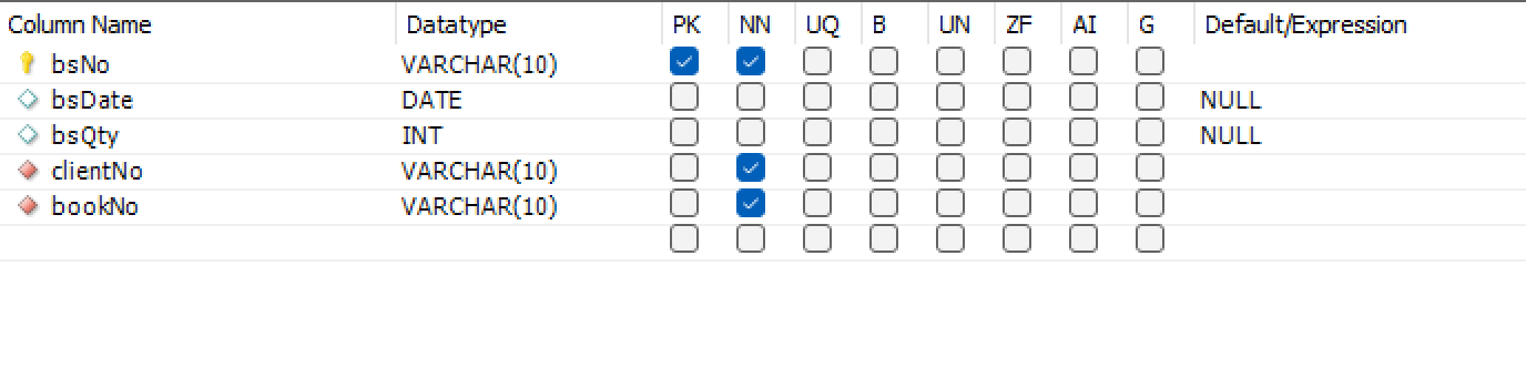 bsNo VARCHAR(10) NOT NULL PRIMARY KEY,