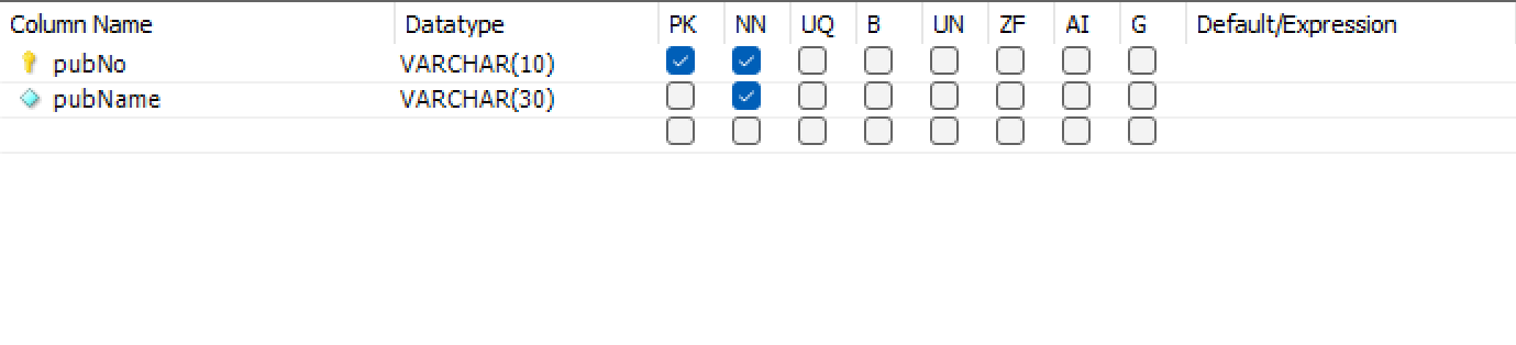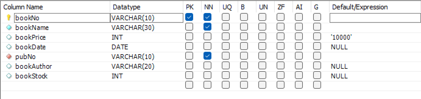 bookNo VARCHAR(10) NOT NULL,