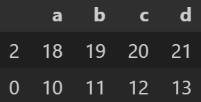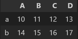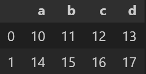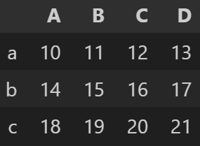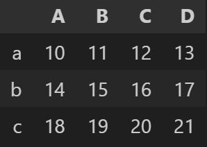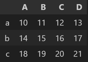 df = pd.DataFrame(data=np.arange(10, 22).reshape(3, 4),
