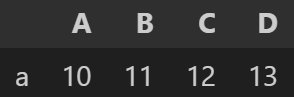 dataframe.loc['νμΈλ±μ€κ°']# 'a' ν μ ν