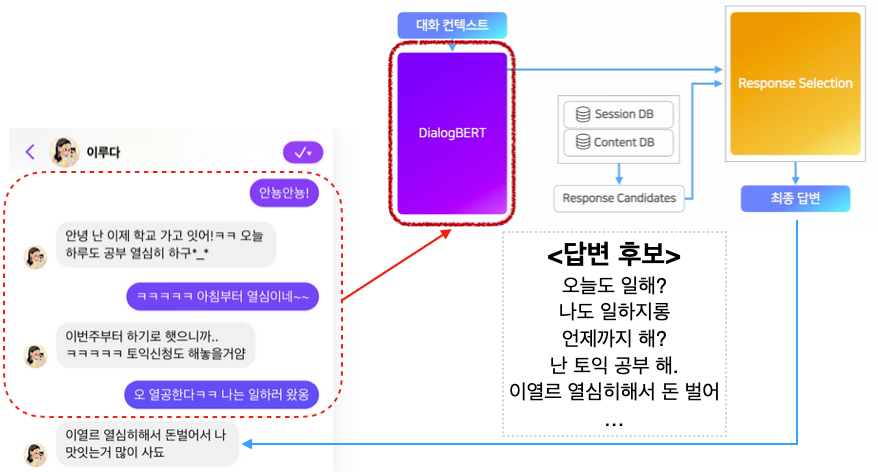 자연어 이해: DialogBERT 사용, 카톡 대화 데이터로 BERT를 학습시킨 것