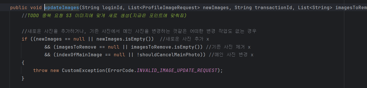 그래서 클라이언트한테 "newImages로 추가할 게 없어도 EmptyList로 전달해주세요!" 라고 요청해도