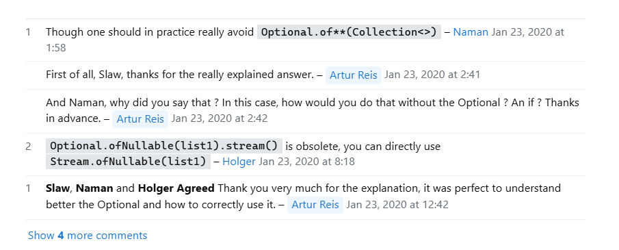 StackOverflow를 검색을 해보니 Stream.ofNullable을 쓰면 stream()을 별도로 호출하지 않아도 바로 null이면 Empty 스트림을, null아 아니면 Stream을 만들어서 이 방식을 더 권장한다고 한다.