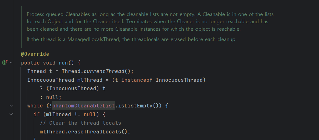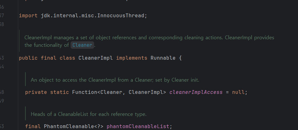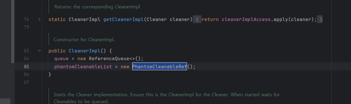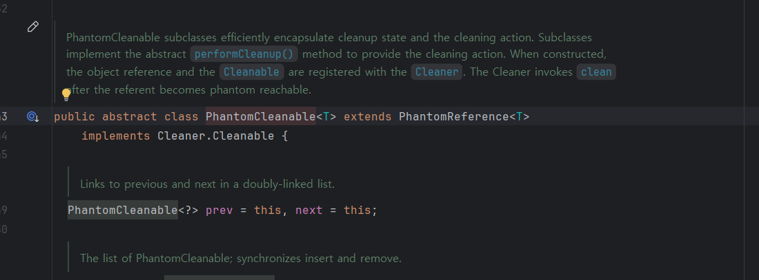 PhantomCleanableRef는 PhantomCleanable을 상속하는데, 이는 자원 정리에 활용되는 객체로 보인다.