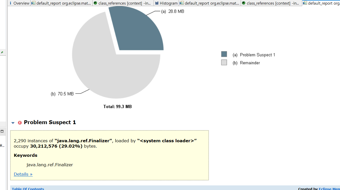 Finalizer라는 클래스가 유력한 leak suspect였다.