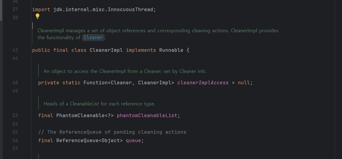 Cleaner는 객체들의 참조를 관리하고, 불필요한 객체의 clean을 담당한다고 한다.