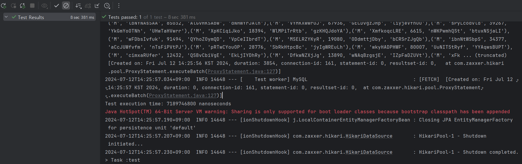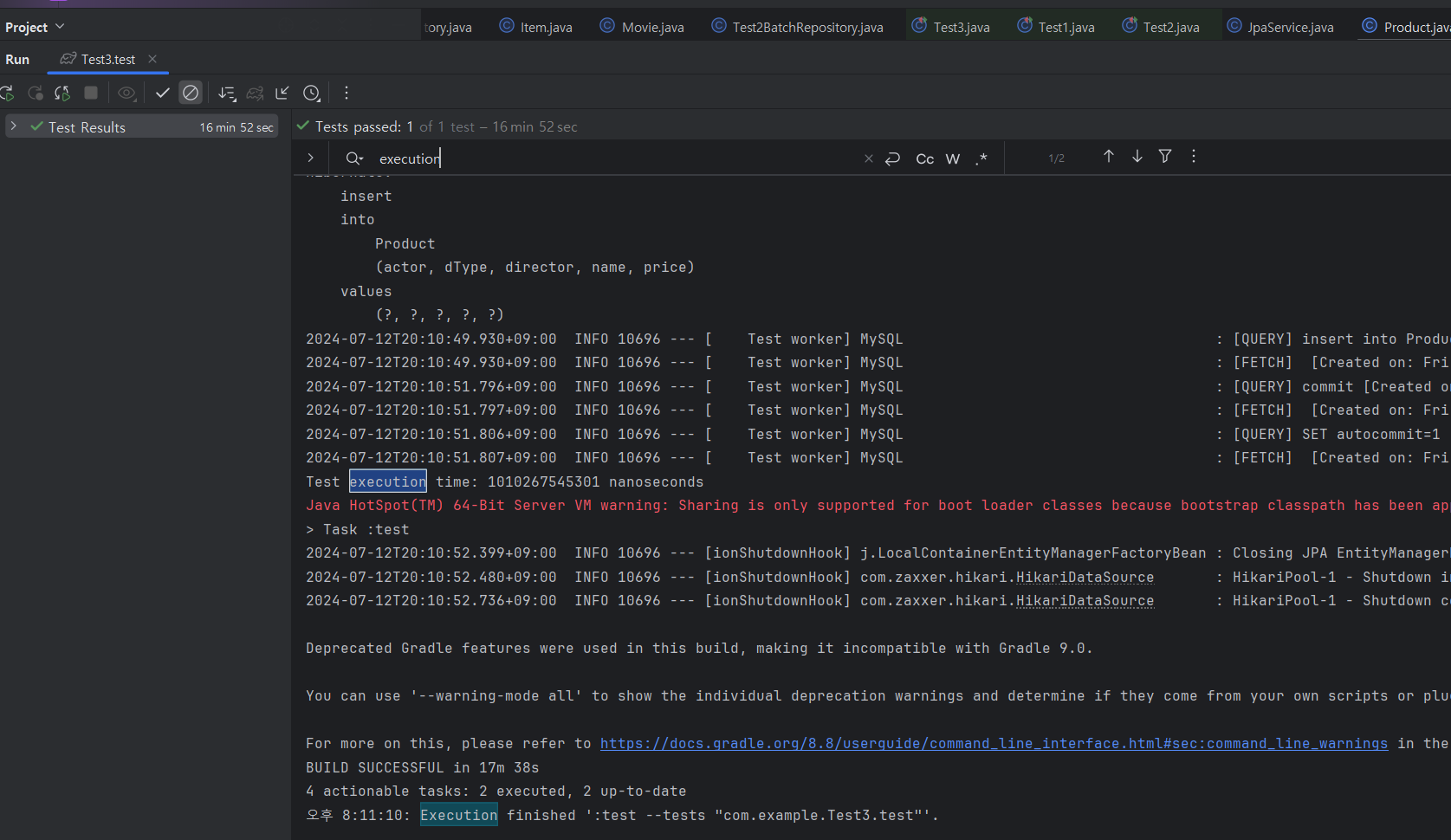 배포 서버에 있는 DB에 엔티티를 하나씩 INSERT할 때는 17분 정도 시간이 걸렸다.