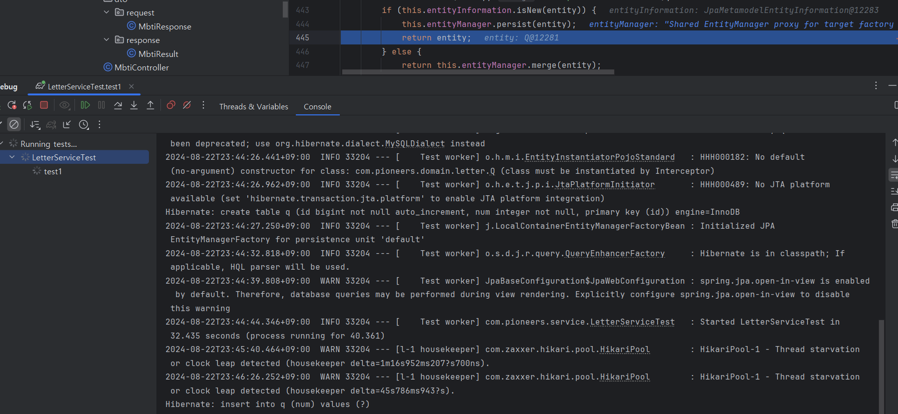 save메서드를 한번 돌때마다 쿼리가 DB로 전송되는 것을 확인할 수 있었다. 쿼리를 몰아서 보내지 않고 하나씩 간다는 게 특징이다.
