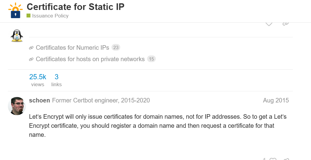검색을 해보니 내가 사용했던 Let's encrypt에서는 IP주소에 대해서는 HTTPS를 발급해주지 않는 것 같다. 그래서 인증서 내용대로하면 IP주소는 맞지 않으니까 계속 에러가 떴던 게 아닐까 하고 생각한다.