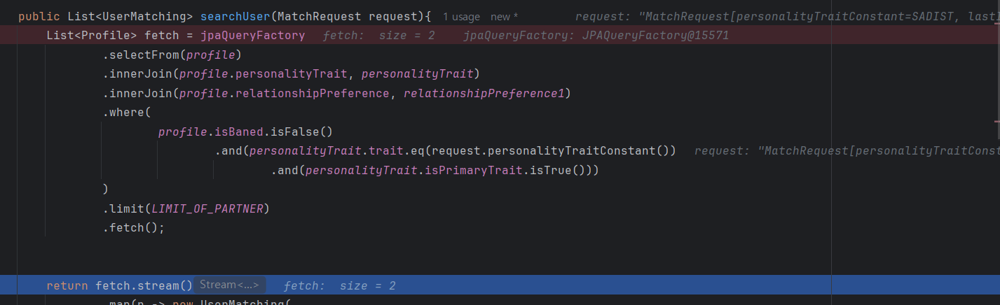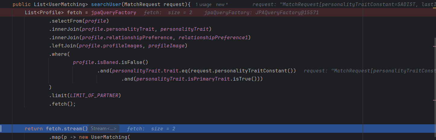 하지만, 우리 서비스의 로직상 innerJoin이 필요하다. 프로필 사진이 있어야만 매칭이 되기 때문이다.