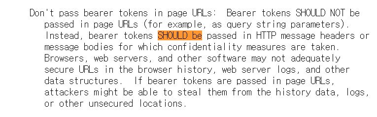 RFC 6750에 따르면, 일반적으로 이러한 jwt 토큰은 헤더에 넣는 게 기본 표준이라고 할 수 있다.