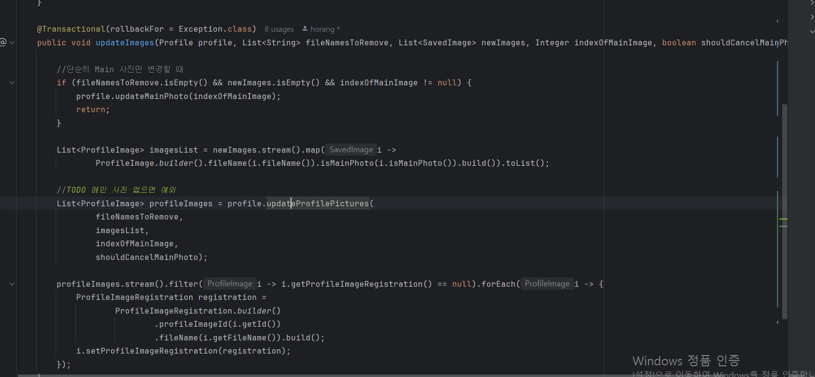 update에서 Validation하는 로직을 다 빼서 validateUpdateRequest 메서드를 만들었다.