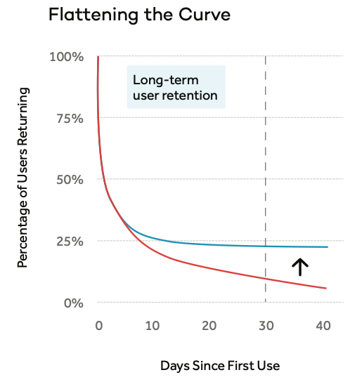 그래프로는 리텐션 커브의 아랫 부분의 기울기를 평탄화시키는 작업에 해당한다.