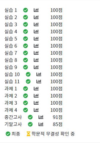 기말고사를 조금 못봐서 아쉽습니다. 얼른 주말에 검토해서 무엇이 틀렸는지 공부해야겠어요~