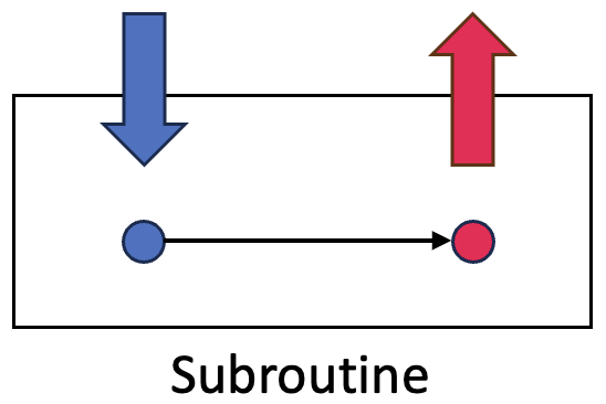 서브 루틴은 메모리에 기능을 모아 놓고, 호출 시 저장된 메모리로 이동한 뒤 실행 후 반환문을 통해 원래 호출 위치로 돌아온다.
