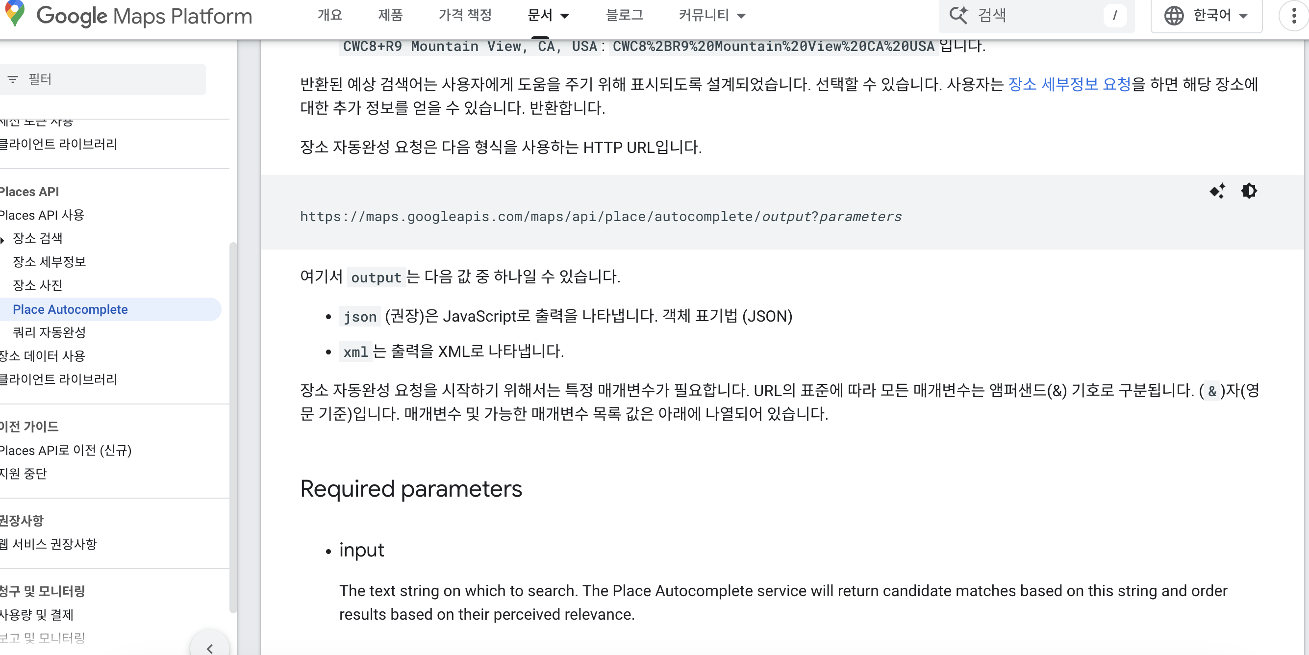 Place Autocomplete 서비스는 장소를 반환하는 웹 서비스입니다. HTTP 요청에 대한 응답으로 요청은 검색 문자열과 선택적 지리적 경계가 있습니다. 이 서비스는 텍스트 기반 지역 검색을 위한 자동 완성 기능을 제공합니다. 업체, 주소 및 관심 장소 같은 장소를 확인할 수 있다.