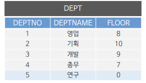 (SELECT DEPTNO FROM DEPARTMENT WHERE (DEPTNAME = '개발')