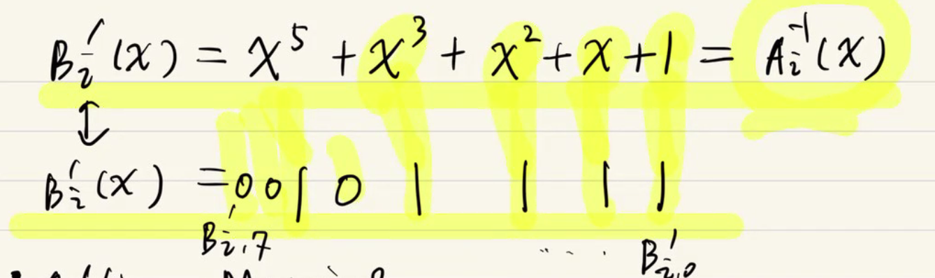 계산해 보니 역원은 x5+x3+x2+x+1이 나왔습니다.
