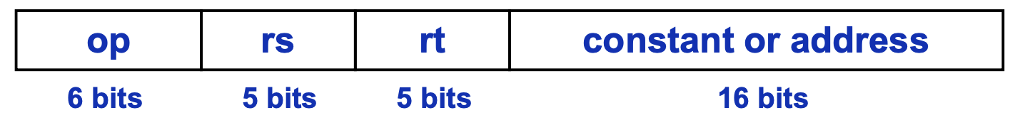 - Immediate Mode: For operations with constants (ADDI) and calculating Branch offsets, 16-bit immediate, offset field