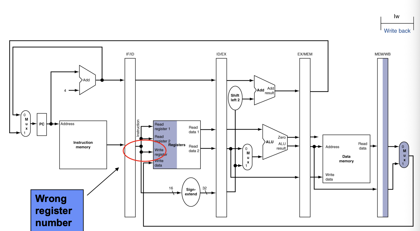 write to Degistiantion register wb -> 바로 write register 로 가는 경로 필요