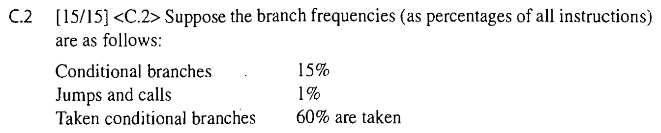 15-deep pipeline where the branch is resolved at the end of the fifth cycle for unconditional branches and a t the end of the tenth cycle for conditional branches. Assuming that only the first pipe stage can always be done independent of whether the branch goes and ignoring other pipeline stalls, how much faster would the machine be without any branch hazards?