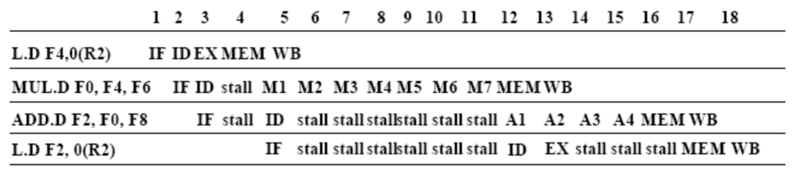 앞 명령어가 L.D F2, 0(R1)인데, 아직 메모리에서 값을 가져오지도 않았습니다(MEM stage 진입 전). 그런데 바로 뒤따라오는 ADD.D가 ID stage에서 F2를 내놓으라고 난리를 칩니다.