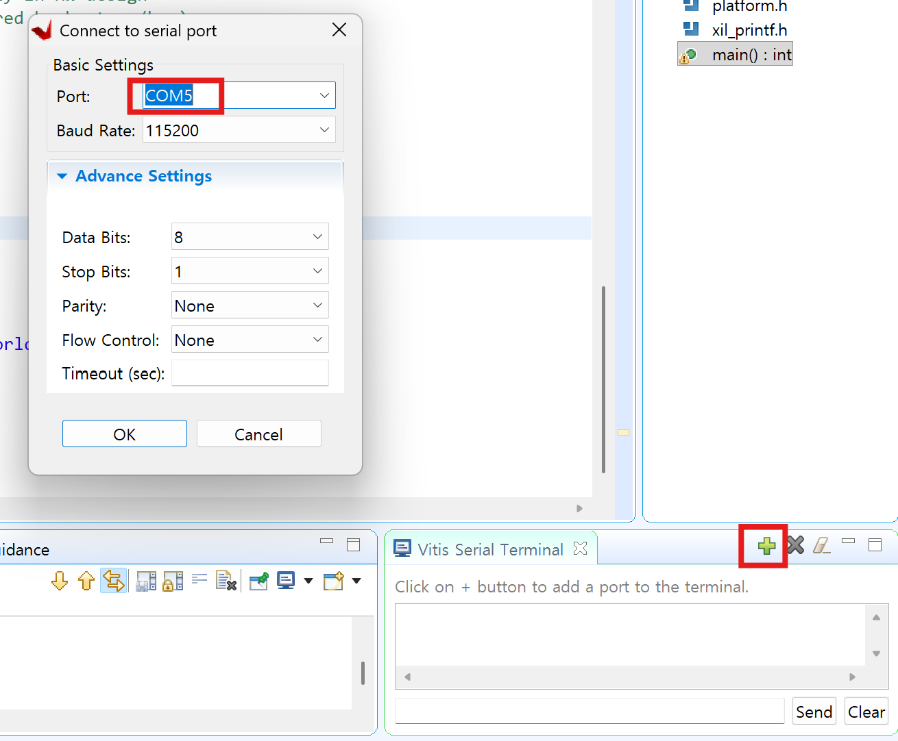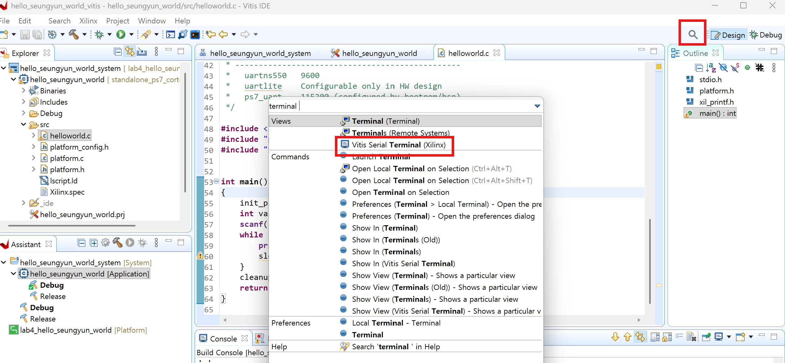 돋보기 -> vitis serial terminal 검색