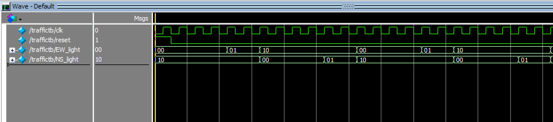 traffic_control uut(clk, reset, EW_light, NS_light);
