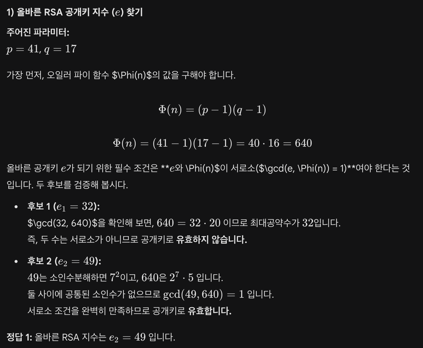 와 서로소인 지수 값은 입니다. 이를 각각 계산해 봅니다.