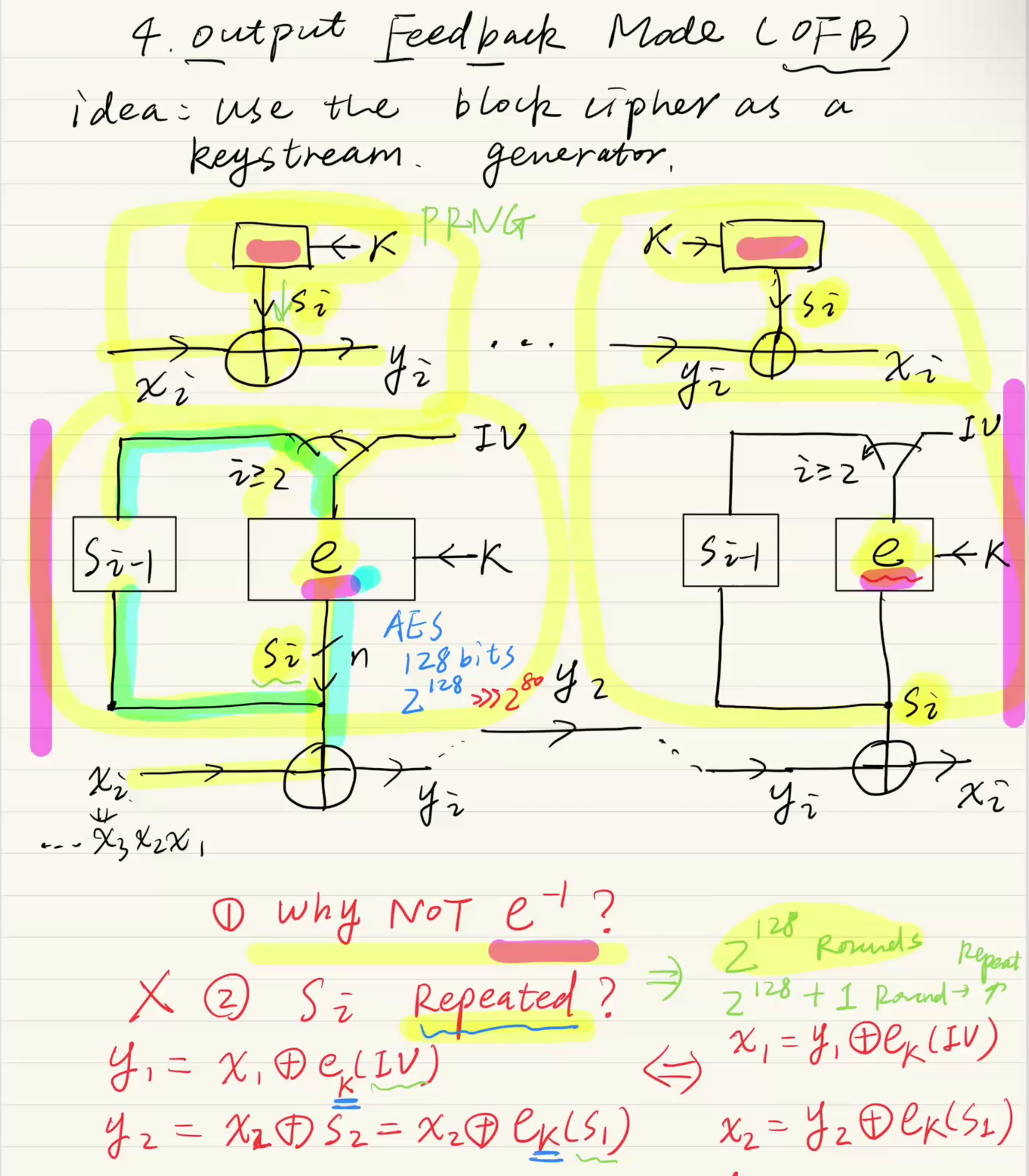 Keystream Generator필기 최상단에 "idea: use the block cipher as a keystream generator"라고 적혀 있습니다. 이것이 OFB 모드의 정체성입니다.