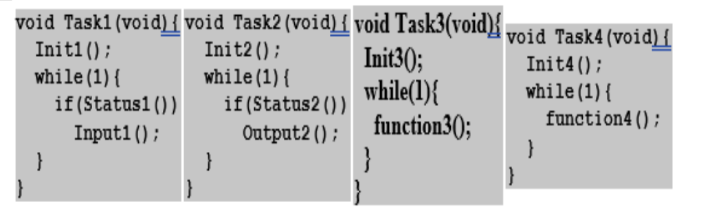작동 방식: Task1, Task2, Task3 등이 각각 마치 하나의 메인 프로그램인 것처럼 코드를 작성하면, RTOS의 핵심 기능인 스케줄러가 시스템의 제약 조건을 만족시키는 방식으로 이 모든 스레드를 실행시킵니다.