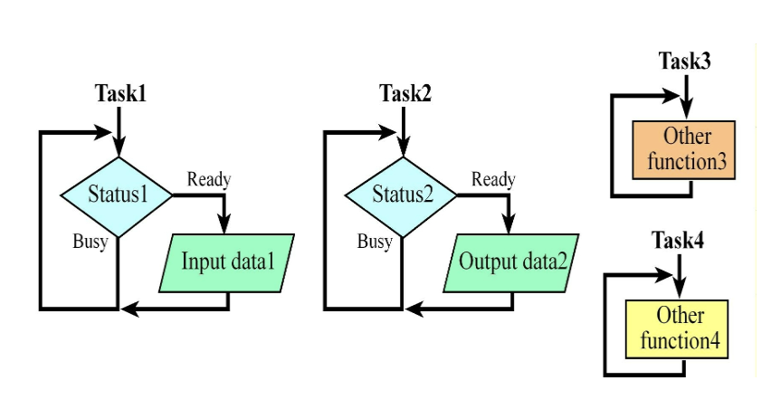 해결책: 스레드 스케줄러(Thread Scheduler)가 포함된 실시간 운영체제(RTOS)를 사용하는 것입니다.