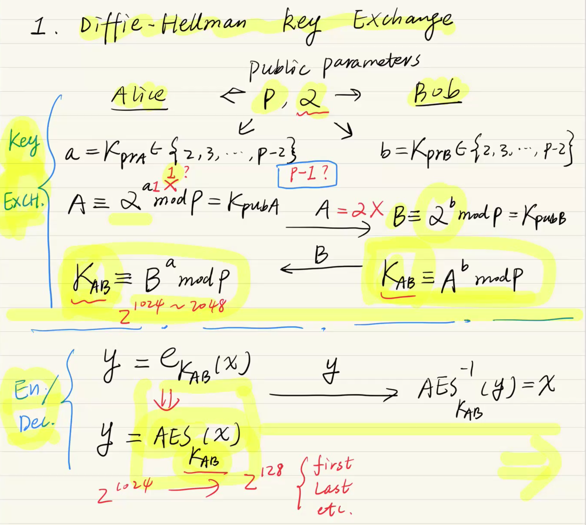 1. 디피-헬먼 키 교환 (Diffie-Hellman Key Exchange)
