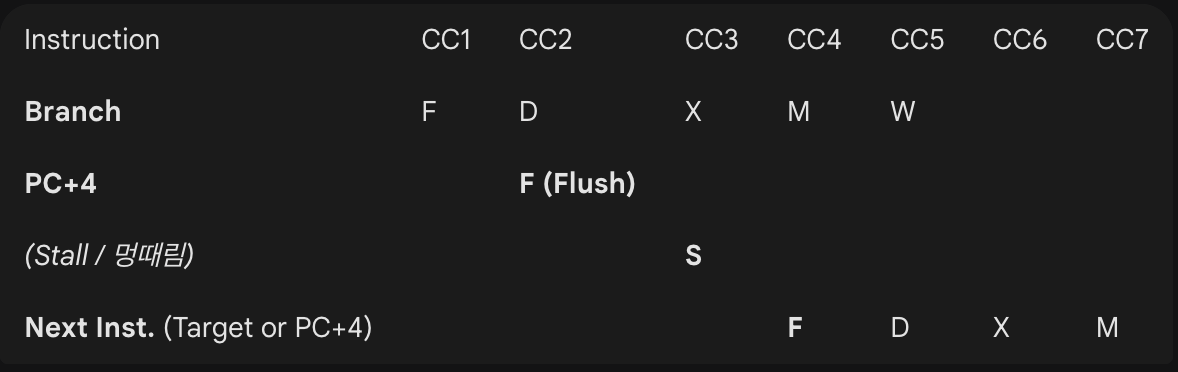 Flush pipeline 전략: 타겟 주소가 나올 때(3단계 끝)까지 숨참고 대기. 👉 페널티 2
