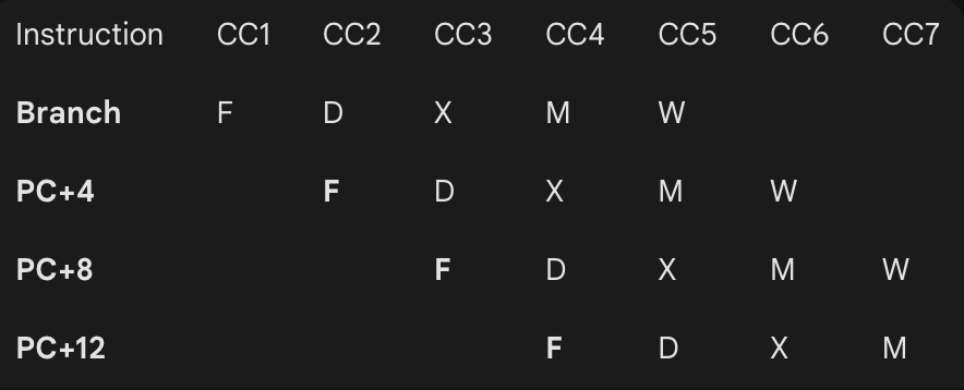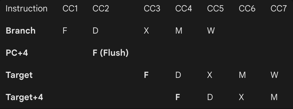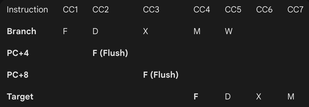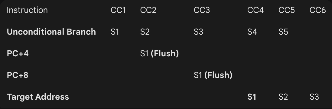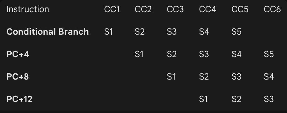 : CC2에 PC+4 가져옴 (아직 타겟 주소를 모르니까 어쩔 수 없음). CC2 끝에서 타겟 주소를 알았으니 CC3에 '타겟 명령어'를 미리 가져옴!