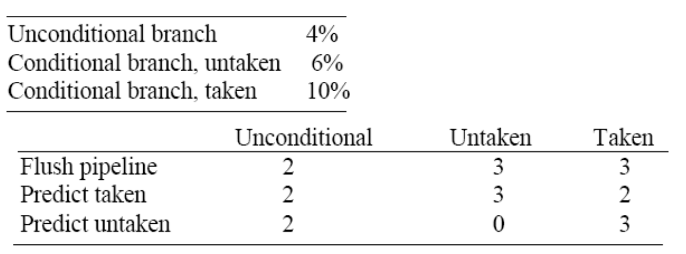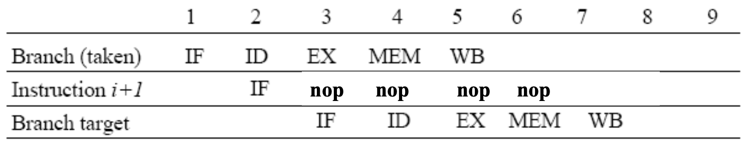 "takes 3 pipeline stages until branch target is known and 1 more to evaluate branch condition"