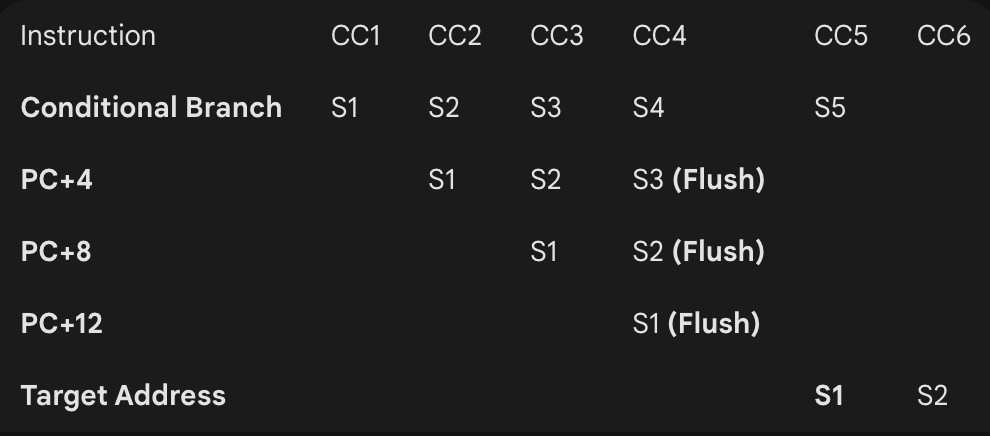 Flush pipeline 전략: 4단계 끝에서 정답 나올 때까지 무작정 대기. 👉 페널티 3