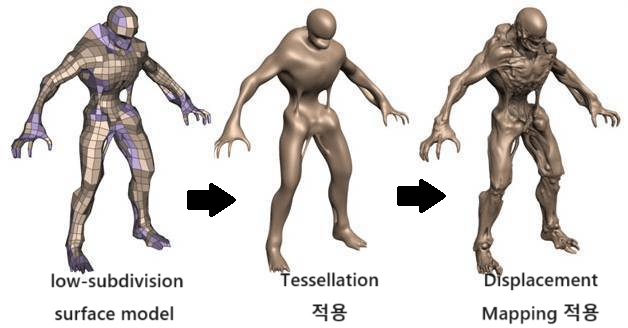 - GPU를 통해 low-detail subdivision surface를 high-detail subdivision surface로 변환