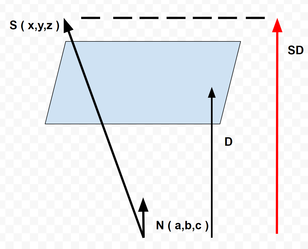 - 즉, D와 SD를 비교하면 임의의 점이 평면으로부터 떨어진 방향을 구할 수 있음